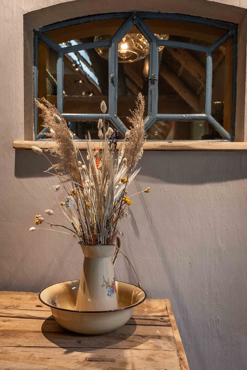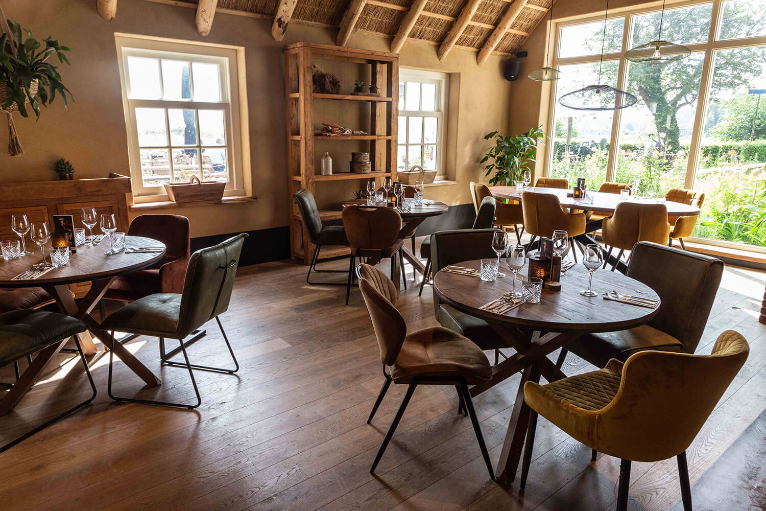 De matte minerale look van Mortex is niet alleen geliefd vanwege zijn hardheid, maar is ook functioneel door zijn onderhoudsarme eigenschappen. De basisleem welke is toegepast in het restaurant heeft een ruwe en natuurlijke look en feel vanwege de afwerking met stro. De ‘ imperfecte’ wanden laten de ruimte echt leven, en dat past perfect bij de landelijke stijl van dit gastvrije restaurant in Egmond.