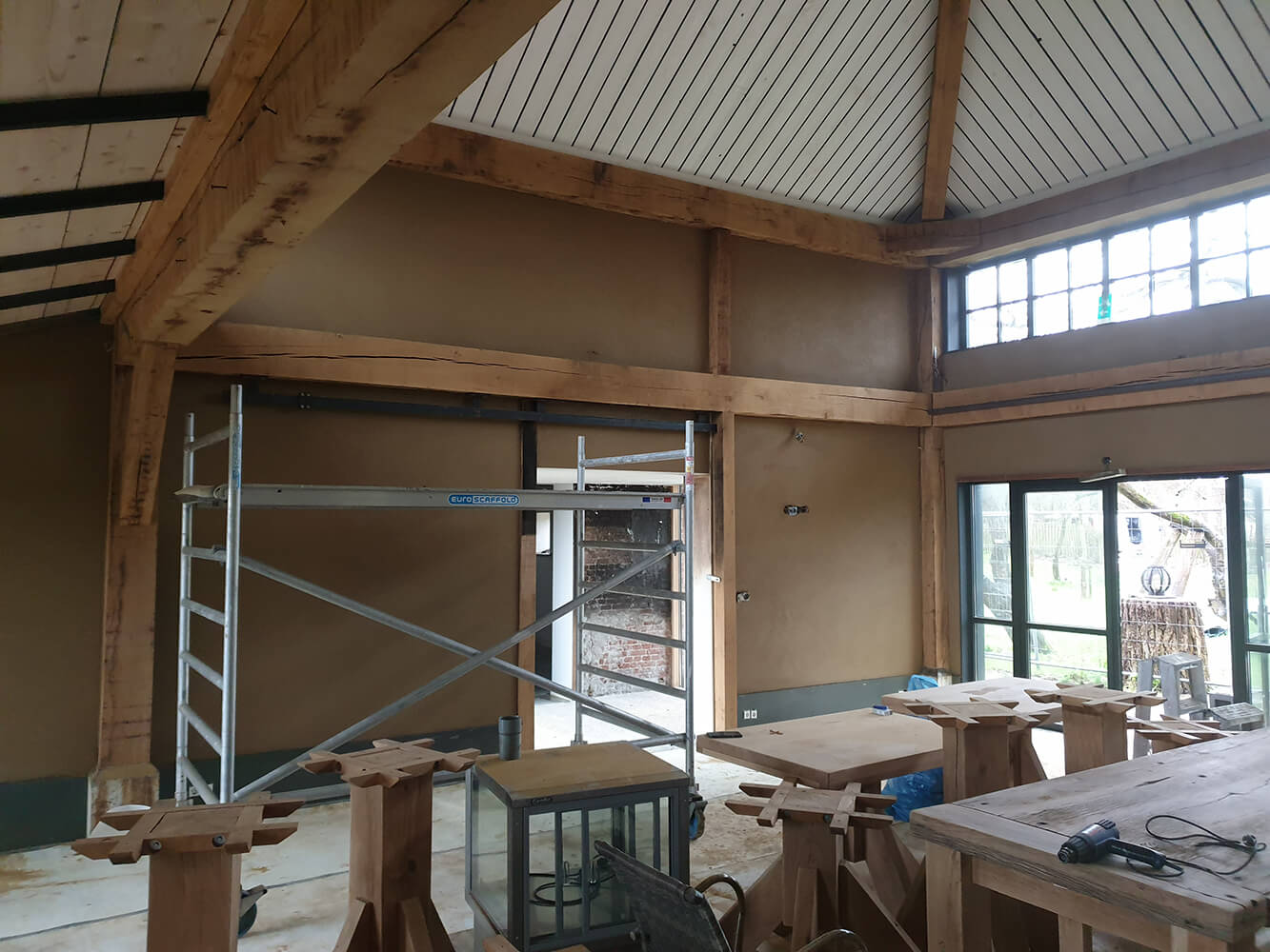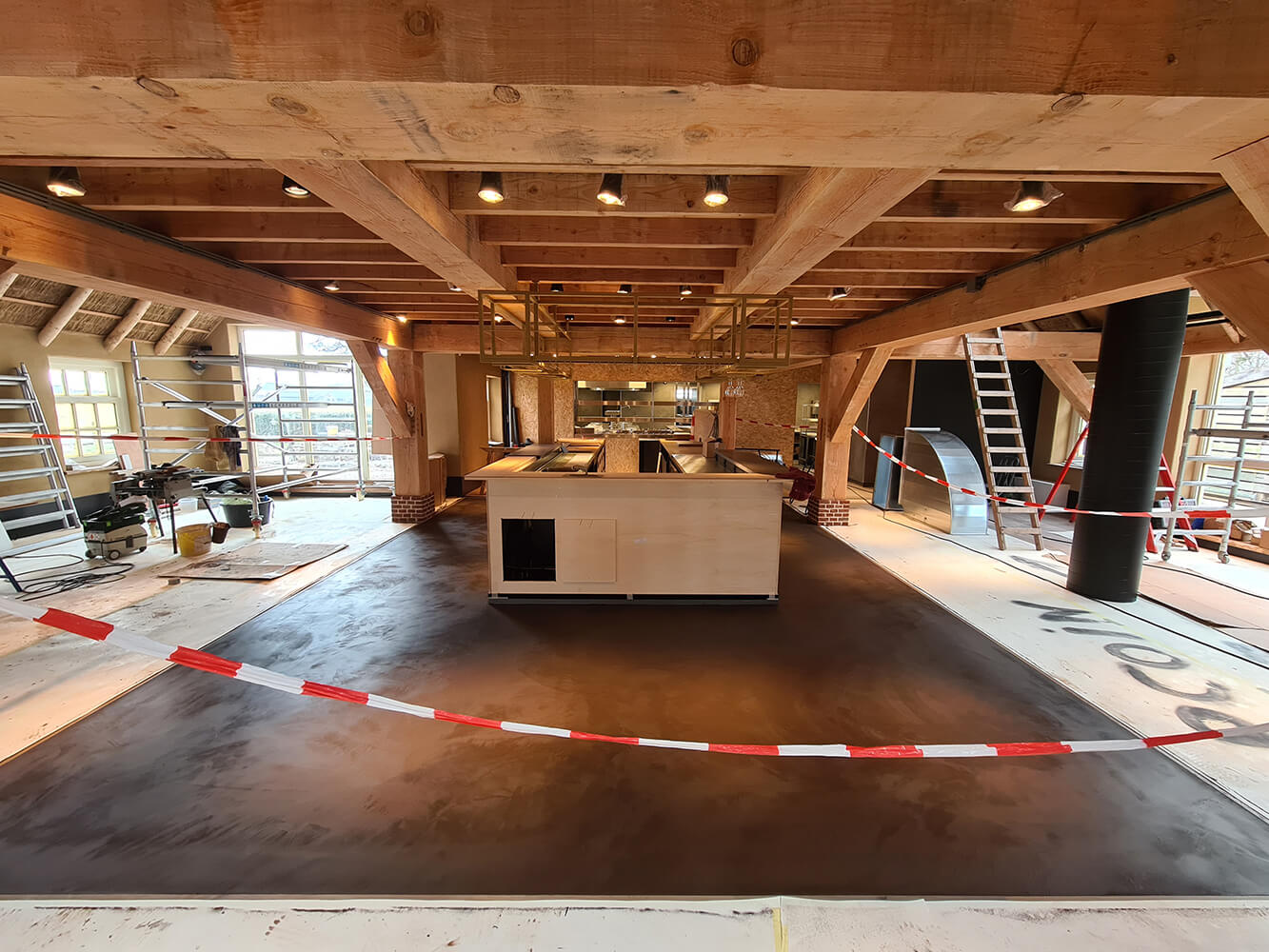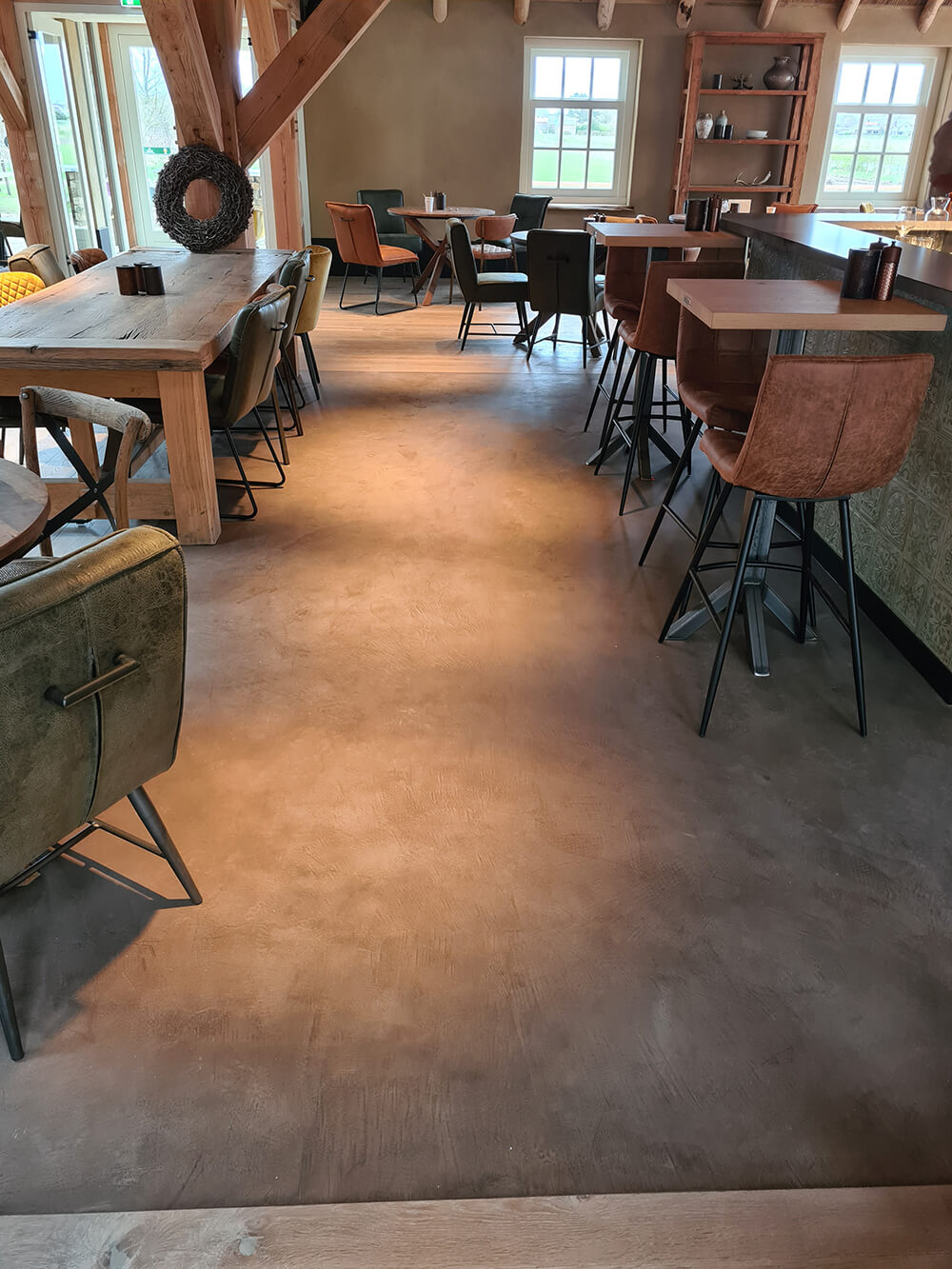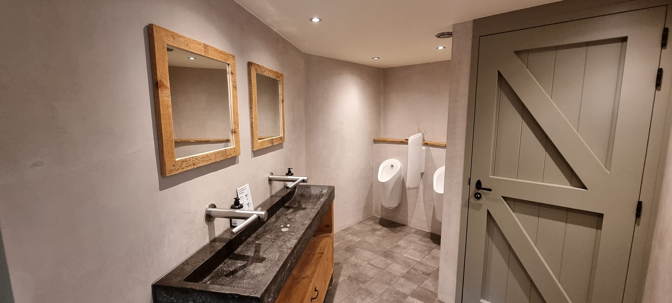 Bij Nieuw Westert kunt u het hele jaar door genieten van de natuur, de rust, de ruimte en natuurlijk de heerlijke gerechten. Wij hebben in verschillende fases diverse ruimten mogen voorzien van duurzame materialen. In de feestzaal is er gekozen voor een basisleem afwerking. Deze is fijn doorgeschuurd. De vloeren zijn voorzien van Mortex en de bar is bedekt met beton cire. Ook in de toiletgroepen is gekozen voor een afwerking met Mortex.